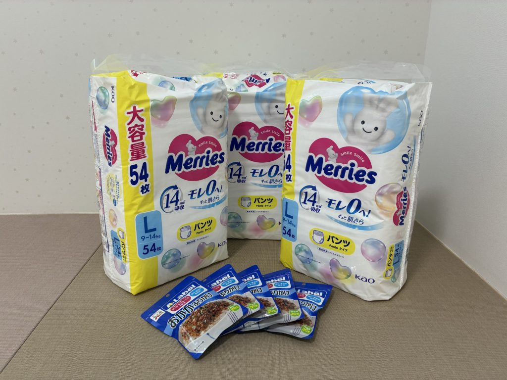 子どもたちが毎日使うオムツと大好きなふりかけです!